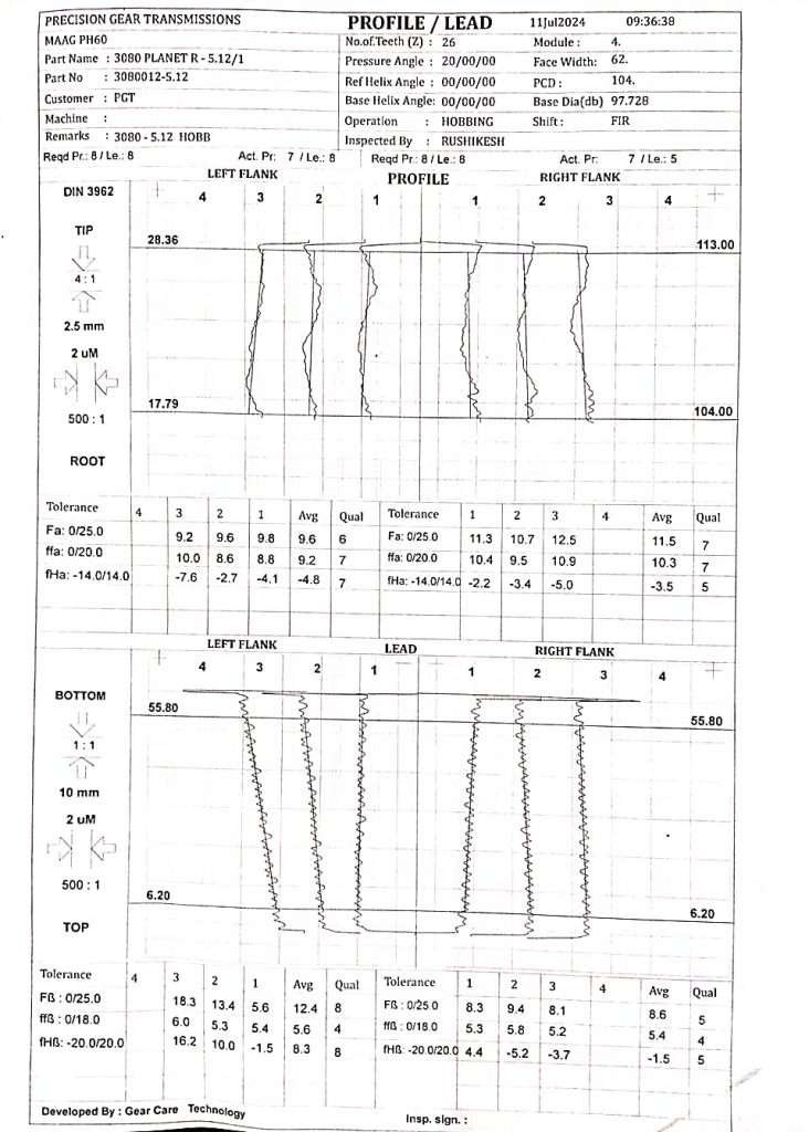 Results of Lead Profile Testing. – Here we are attaching the report of the Gear Lead profile tester.